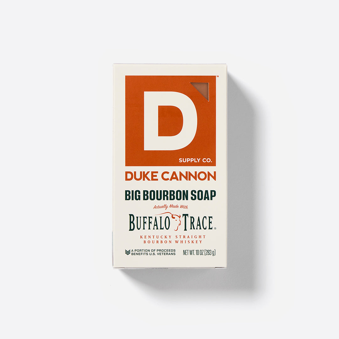 In the early days of the American Frontier, rugged pioneers indulged at the end of a long day with a dry buffalo steak and a pull of whiskey, not a $12 appletini and plate of bruschetta. Duke Cannon honors that can-do spirit by partnering with Buffalo Trace® Distillery to add their award-winning Kentucky Straight Bourbon Whiskey to this Big American Bourbon Soap.