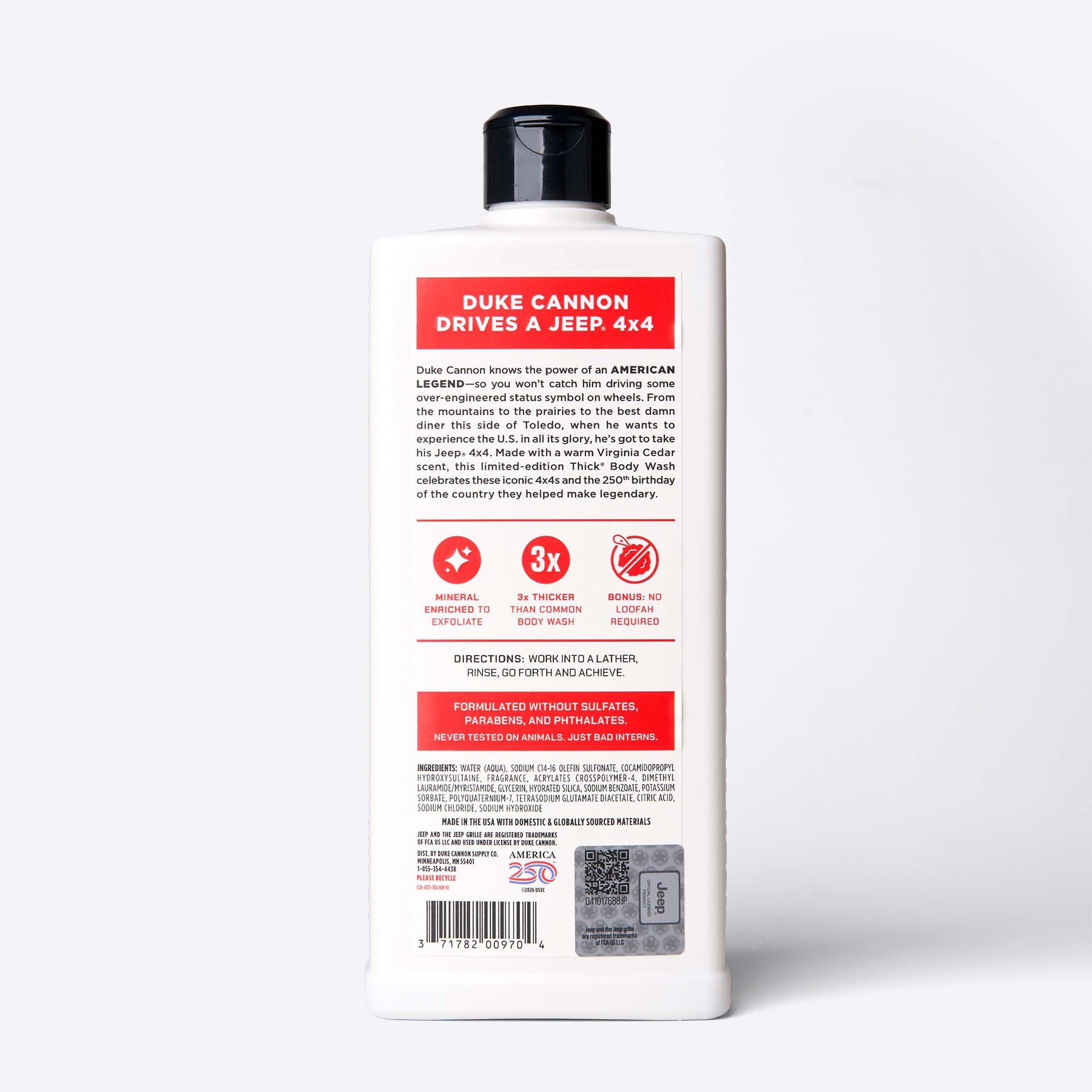 Made with a warm Virginia Cedar scent, this limited-edition Thick® Body Wash celebrates these iconic 4x4s and the 250th birthday of the country they helped make legendary.