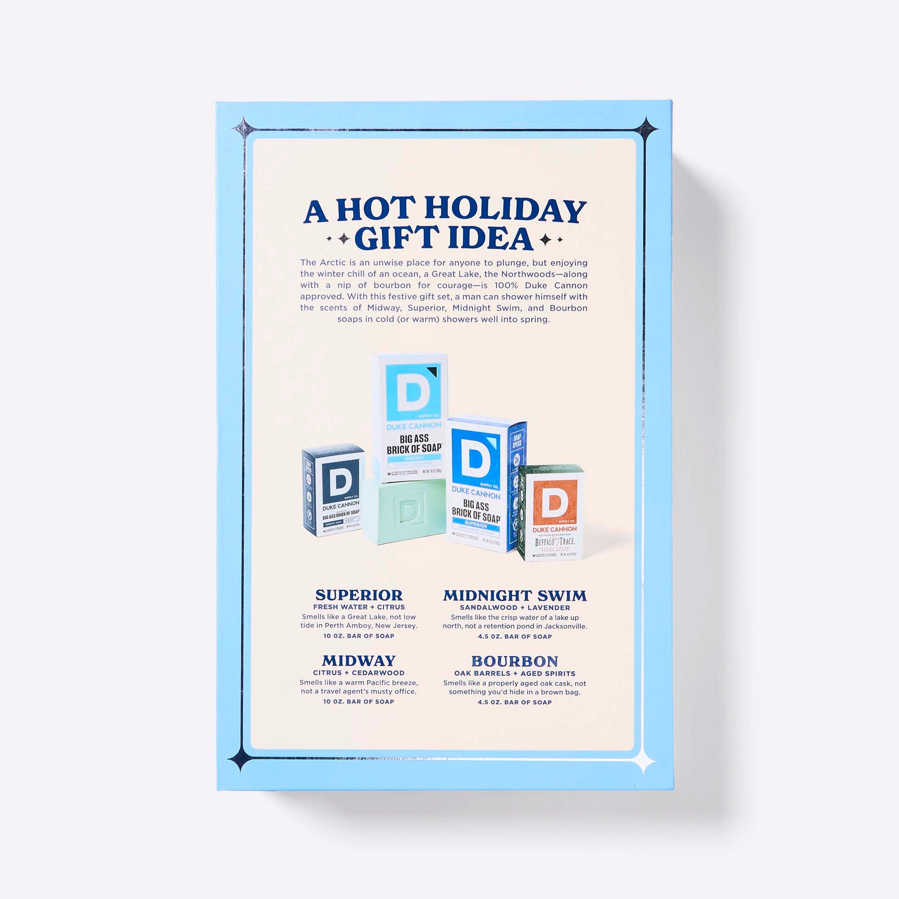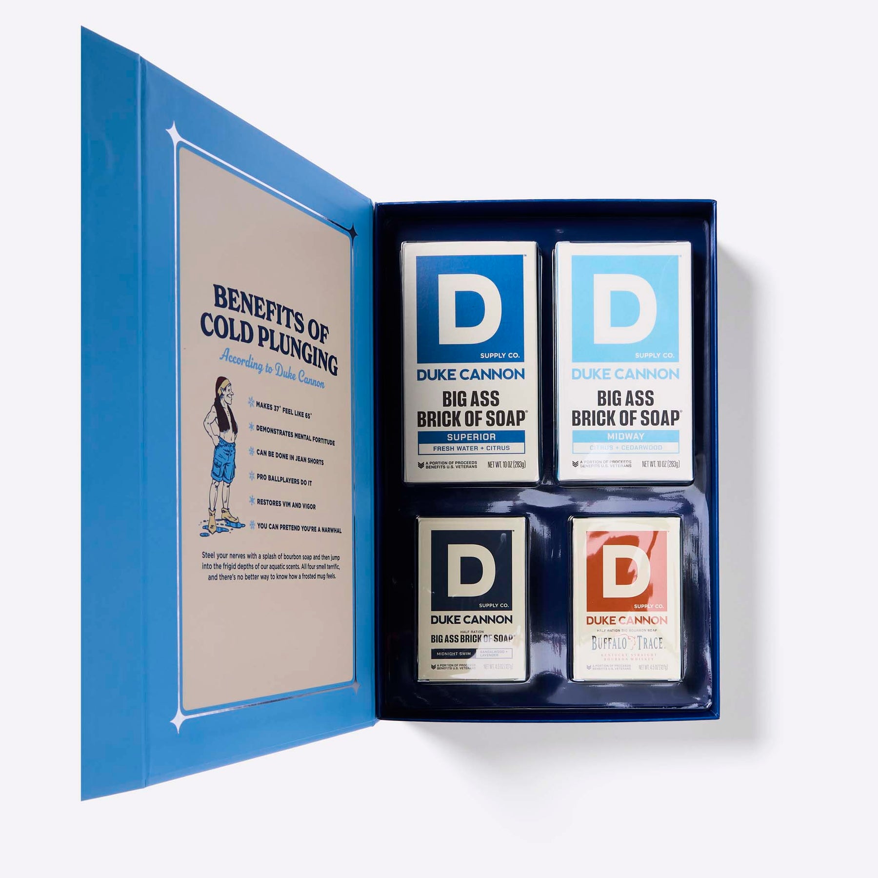 The Arctic is an unwise place for fellows to plunge. But enjoying the invigorating waters of a tropical atoll, a Great Lake, a secret swimming hole, and a bracing dram of whiskey? That’s definitely Duke Cannon approved. With this festive gift set, a man will have enough provisions to immerse himself in the aquatic splendor of Midway, Superior, Midnight Swim, and Buffalo Trace Kentucky Straight Bourbon Whiskey throughout the winter and well into spring.